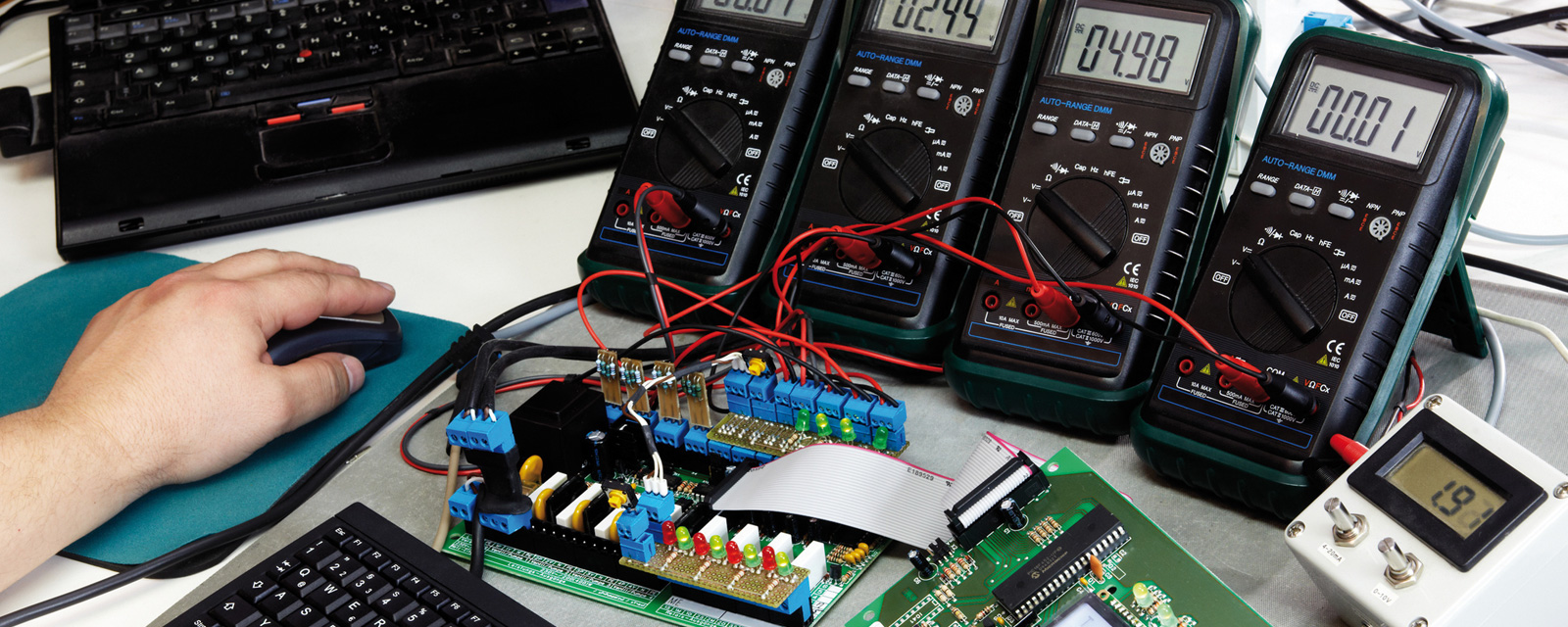 Neben der Forschung und Entwicklung gehört auch die Produktionstechnik von Elektrogeräten wie Wandlern, elektrischen Bauelementen oder Schaltungen zum Gebiet der Elektrotechnik.