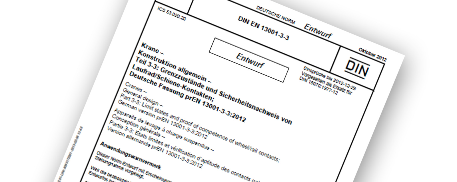 Praktische Anwendung der EN 13001-3-3 Grenzzustände und Sicherheitsnachweise – Einführungsseminar